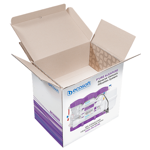 Ecosoft P'URE Alkafuse este o combinatie dintre tehnologia de purificare prin membrana de osmoza inversa (0.0001 microni) de 75 GPD, cartuse pre si post filtrare cu dublu carbune activat, dar si un cartus special pentru remineralizarea apei si cresterea PH-ului filtrate cu imbogatire cu calciu.